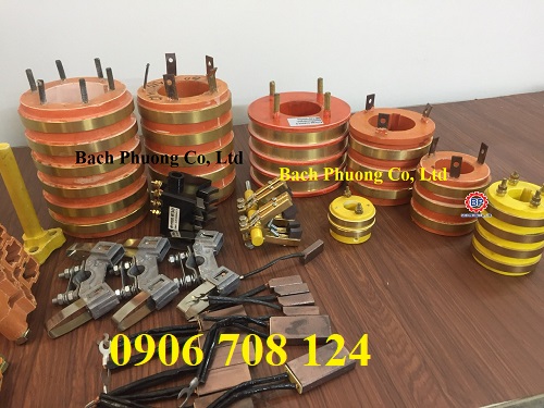 Cổ góp điện 5 phađược sử dụng cho động cơ lấy nguồn động lực 3 pha và 2 pha tín hiệu, lá than rời có thể thay thế sau khi bị mòn.